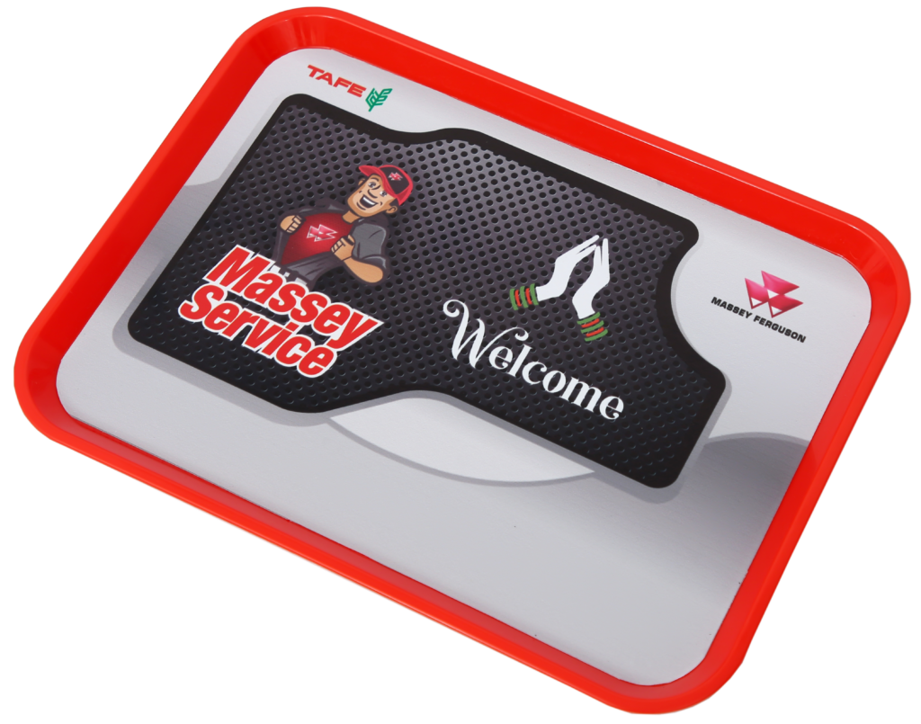 Red color tray with MF logo printed sticker – 1 no